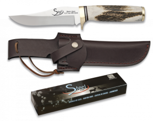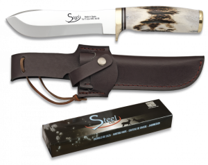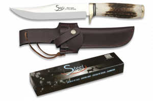 10. Cuchillo Deportivo Steel 440 Nº1 Con Mango Asta De Ciervo Y Hoja De 14 Cm Incluye Funda De Piel 31911