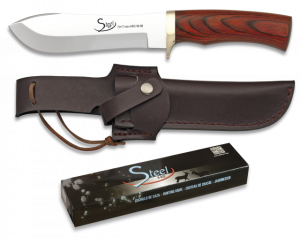 11. Cuchillo Deportivo Steel 440, con Mango de Madera y Virola Alpaca, Hoja de 8,7 cm.  Incluye Funda de Piel 32048