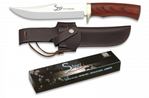 23. Estilete Steel 440 con Mango de Madera Roja y Hoja de Acero Inox de 10 cm, en caja a color 19553