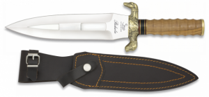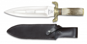 3. Cuchillo de remate Steel 440, virola de acero, mango de asta de ciervo, hoja de 22 cm de acero inoxidable, total 35 cm, con funda de piel, 32131