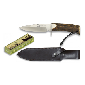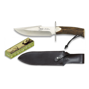 9. Cuchillo Deportivo Steel 440 Mango Asta de Ciervo y Hoja de 12 Cm Incluye Skinner y Funda 31915