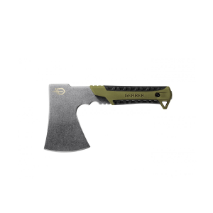 23. Hacha de caza Gerber Pack, hoja de acero inoxidable lavado a la piedra, largo total 24,03 cm, mango de goma, incluye funda, GE30001598
