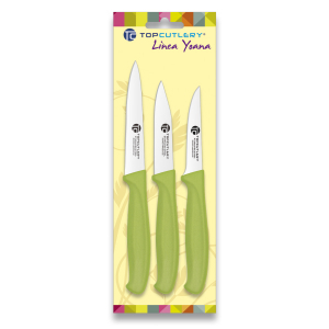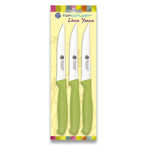 Blister de 3 cuchillos color verde, 17324-ve, top cutlery, línea yoana...