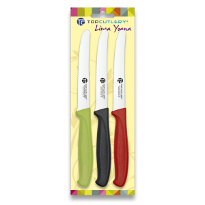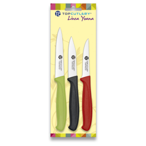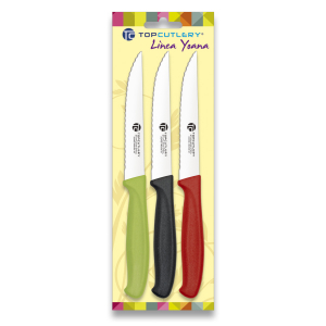 27. Blister de 3 cuchillos de diferentes colores 17332, Top Cutlery, línea Yoana 17379
