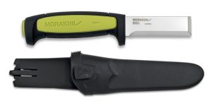 38. Cincel Morakniv, Modelo Chisel, con hoja de Acero de Carbono de 7.5 cm y Mango de Goma. Incluye Funda PVC