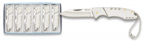 37. Caja de 6 Navajas Llavero de Acero Martinez Albainox Sin Bloqueo con mango de acero inoxidable y Hoja de 5 cm en caja de presentación 18037