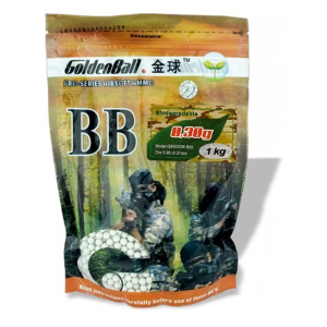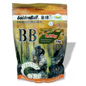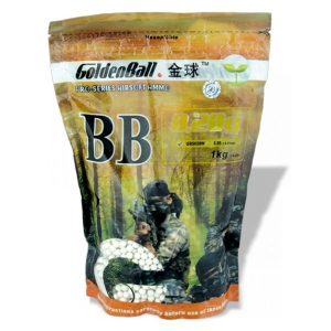 1. Bolas de plástico Compacta PVC para armas airsoft Golden Ball 6 mm 0.25 gr en bolsa con cierre hermético y 1 Kg de bolas 35642