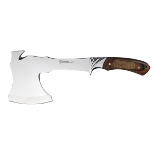 28. Hacha deportiva iField Camper EL29001, hoja de acero inox de 9,5 cms, total 29,5 cm, con funda de piel, mango Stamina decorada CNC,  herramienta de camping para pesca, caza, actividad deportiva
