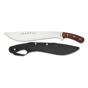 Il machete è più grande e viene utilizzato con entrambe le mani, può eseguire la maggior parte dei compiti in modo molto efficiente. La sua qualità maggiore è la dimensione della lama e la sua robustezza. Un pezzo di metallo molto forte e tagliente.