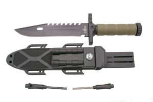 Uma peça de equipamento de sobrevivência é uma faca de sobrevivência de qualidade. Uma boa faca de sobrevivência não é apenas para autodefesa, mas também uma ferramenta que lhe pode proporcionar protecção, e a capacidade de caçar e preparar a sua comida em situações de emergência, e também pode ajudá-lo a construir um abrigo, e criar pequenos objectos vitais para a sua sobrevivência. Uma faca de sobrevivência é provavelmente a ferramenta mais importante de que necessitará para sobreviver. Ao escolher uma faca de sobrevivência, há alguns factores importantes a considerar, tais como material, geometria, ergonomia do cabo e tamanho. Com o crescimento do número de pessoas interessadas em aventura e equipamento táctico hoje em dia, ter uma boa faca é essencial. Aqui pode escolher a melhor faca de sobrevivência, nós somos uma referência em Espanha na venda de facas de sobrevivência e facas tácticas, temos uma vasta selecção de opções. Uma faca resistente com várias funções pode aumentar as suas hipóteses de fugir ao perigo sem grande dificuldade. Trabalhamos com as melhores marcas do mercado sempre com a mais alta qualidade, e garantimos.