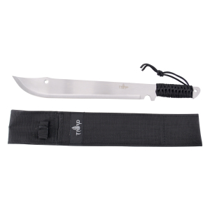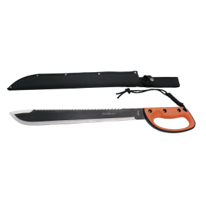 A machete é maior e é utilizada com ambas as mãos, pode executar a maioria das tarefas de forma muito eficiente. Tem como maior qualidade o tamanho da sua lâmina e a sua robustez. Uma peça metálica muito forte e afiada.